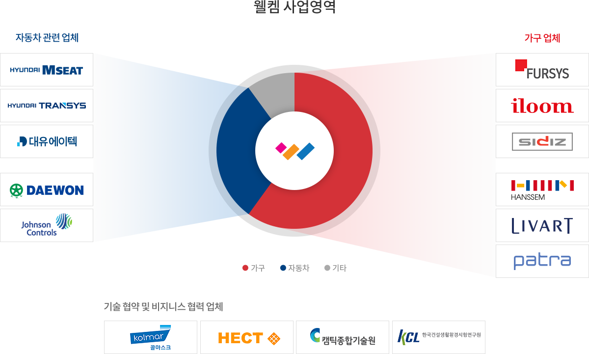 주식회사 웰켐의 기술 및 생산능력은 유수의 국내 가구 및 자동차 관련업계로부터 최고의 품질로 평가받고 있습니다.